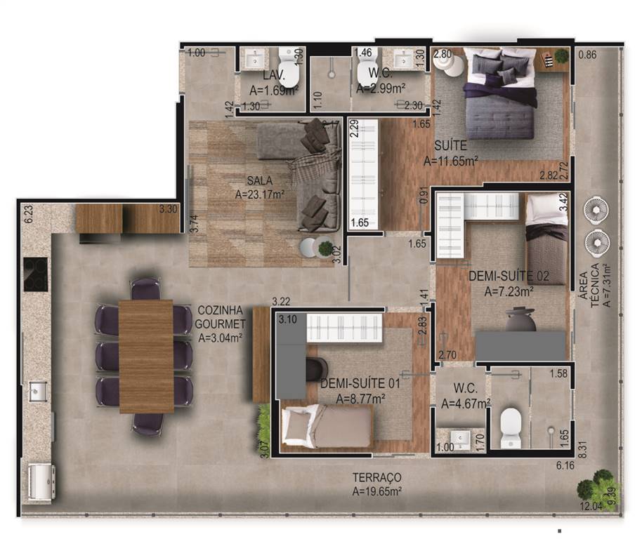 Área Útil107,25m²