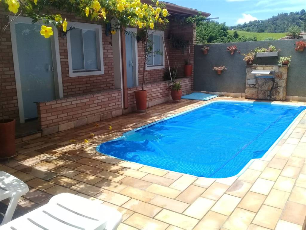LINDO RANCHO COM 1 CASA DE 3 DORMITÓRIOS, 1 SUITE, 4 VAGAS DE GARAGEM, 1 BANHEIRO SOCIAL, 1 LAVABO, 1 SALA, 1 COZINHA, 1 VARANDA, 1 ÁREA DE SERVIÇO, 1 EDICULA, 1 QUARTINHO DE MANUTENÇÃO, CHURRASQUEIRA, 1 PISCINA.